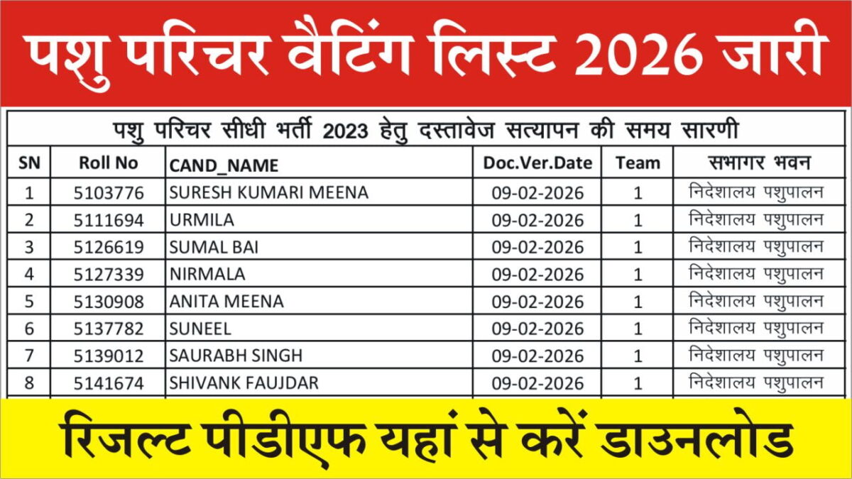 राजस्थान पशु परिचर वैटिंग लिस्ट रिजल्ट पीडीएफ़ 2026: यहाँ से डाउनलोड करें